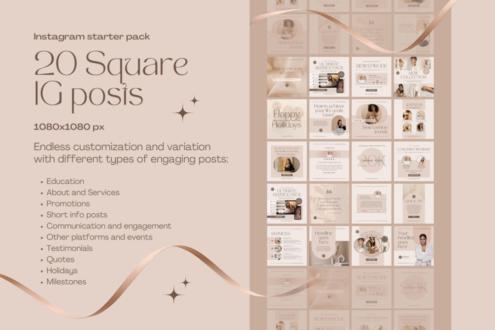 Plug and play Canva templates - square, vertical posts and seamless carousel